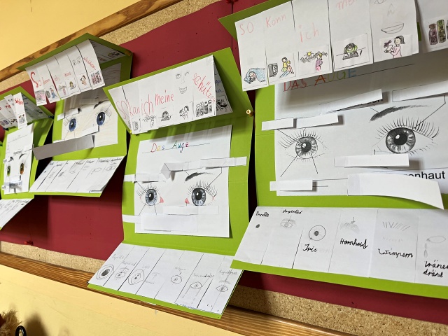 Unsere Drittklässler haben im Rahmen eines Lapbook-Projekts das Thema "Auge" erforscht. Ein Lapbook ist ein kreatives, interaktives Lernbuch mit Klappen und Taschen, das spielerisches Lernen ermöglicht.