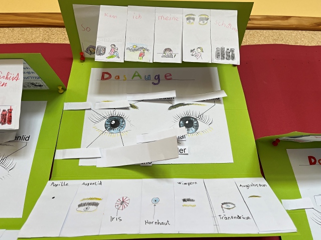 Unsere Drittklässler haben im Rahmen eines Lapbook-Projekts das Thema "Auge" erforscht. Ein Lapbook ist ein kreatives, interaktives Lernbuch mit Klappen und Taschen, das spielerisches Lernen ermöglicht.
