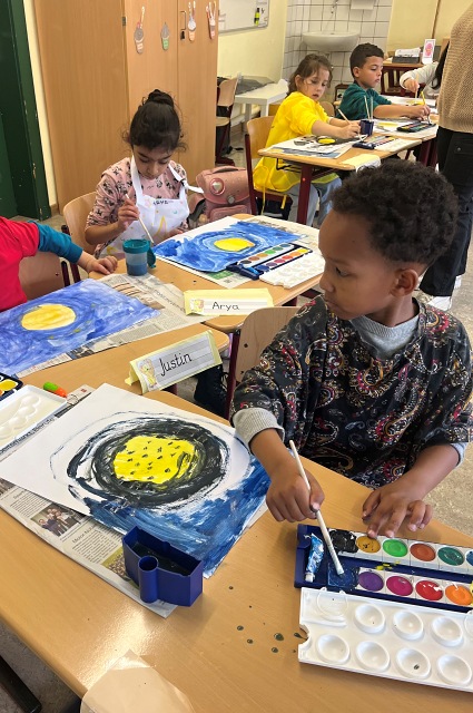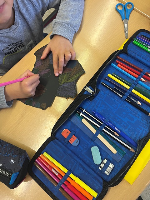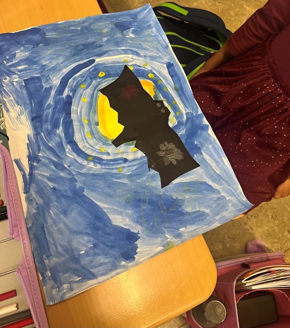 Die Klasse 1b lauschte in der letzten Woche der Geschichte von Fritzi, einer kleinen Fledermaus. Nachdem Fritzi vergeblich versuchte mit seinen Geschwistern um Mitternacht zu spuken, beschloss er von nun an die freundlichste Fledermaus aller Zeiten zu werden und dekorierte passend dazu das ungruseligste Haus der Stadt. Passend dazu gestalteten die Kinder mit Wasserfarben und im Anschluss mit Tonpapier die Fledermaus Fritzi oder dessen Haus und hatten dabei viel Freude!